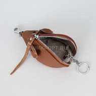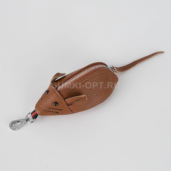 Ключница от торговой марки Poshete из натуральной кожи коричневого цвета. Оригинальная модель в виде мышки с креплением-карабином. Отделение на молнии. Внутри: фирменная подкладка, кольцо для крепления ключей.