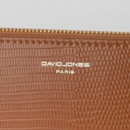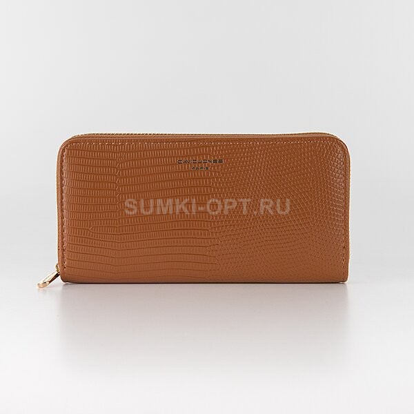 Полноразмерный кошелек от торговой марки David Jones из искусственной кожи коньячного цвета. Декорирована тиснением под рептилию. Модель с отделением на молнии. Внутри: карманы для карт, купюр, карман для монет на молнии.