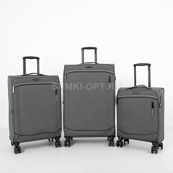 Набор чемоданов от торговой марки Francesco Molinary из прочного практичного текстильного материала серого цвета. Набор состоит из моделей 20, 24 и 28 дюймов. Чемодан на четырех сдвоенных колесах, с выдвижной ручкой с кнопкой, ручками-переносками сверху и сбоку (у модели 20” только сверху). Закрывается крупной молнией; имеется кодовый замок TSA, утопленный в корпус. Внутри: фирменная подкладка; в глубоком отделении – фиксирующие ремни для багажа, на крышке – два кармана на молнии, в том числе карман-сетка. Верхние углы защищены прорезиненными накладками. У чемоданов 24 и 28” имеется раздвижка на молнии для увеличения объема. На лицевой стороне – два кармана на молнии.