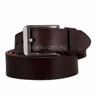 Стильный мужской ремень от бренда Poshete выполнен из натуральной толстой кожи, с оборотной стороны замшевый. Ремень коричневого цвета, ширина 3,5 см, длина 116-120 см. Стальная квадратная пряжка с классическим язычком, шлёвка не перемещается, на ремне пять отверстий для фиксации объёма, на конце полукруглой формы.