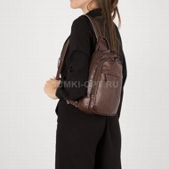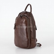Повседневный женский рюкзачок Poshete коричневого цвета, выполнен из натуральной матовой кожи. Модель имеет два основных отделения на молниях, расстёгивающихся по трём сторонам, ручку сверху и заднюю лямку, которую можно отстегнуть снизу и убрать в карман на молнии, также лямка расстёгивается пополам для удобного ношения за спиной, спереди есть карман на скрытой молнии.