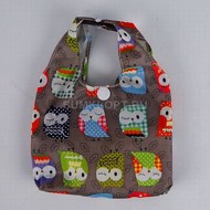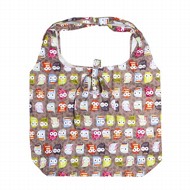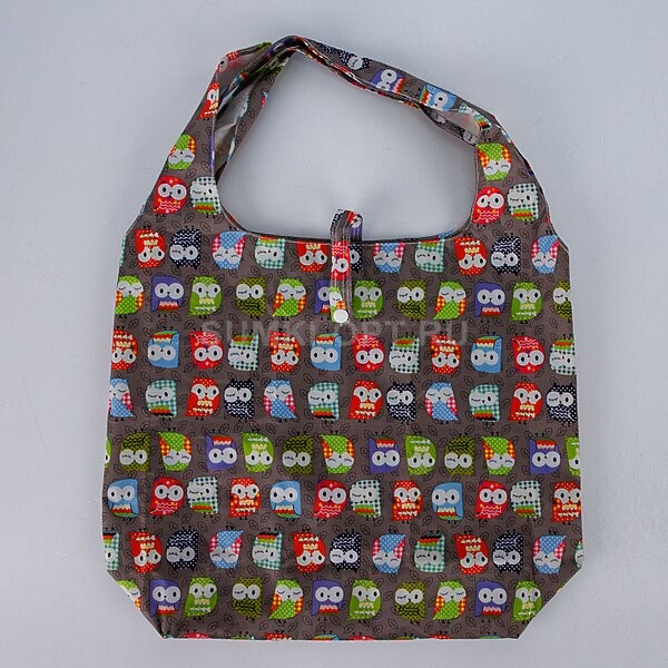 Складная сумка выполнена из лёгкого непромокаемого текстильного материала. Модель бежевого цвета с ярким изображением сов; закрывается хлястиком на кнопке. Широкие ручки являются продолжением сумки; ее удобно носить как в руках, так и на плече. Вместительная прочная сумка заменит пластиковый пакет. К сумке прилагается чехол с ручками; закрывается на кнопку.