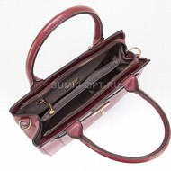 Сумка от торговой марки David Jones из искусственной кожи бордового цвета. Модель с двум ручками и съемным регулируемым плечевым ремнем. Отделение на молнии. Внутри: фирменная подкладка, средник и карман на молнии, накладной карман. На лицевой стороне – накладной карман с поворотным замком. На задней стороне – карман на молнии. Дно оснащено металлическими ножками для защиты от износа.