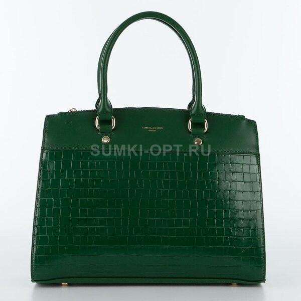Сумка от торговой марки David Jones из искусственной кожи зеленого цвета с тиснением под крокодиловую кожу. Модель с двумя плотными ручками и съемным регулируемым плечевым ремнем. Два отделения на молнии, с фирменной подкладкой. В основном отделении – карман на молнии, накладной карман. На задней стороне – карман на молнии. Дно оснащено металлическими ножками для защиты от износа.