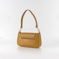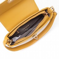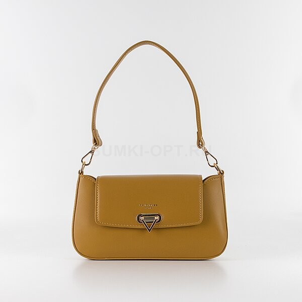 Сумка от торговой марки David Jones из искусственной кожи горчично-желтого цвета. Модель со съемной ручкой и съемным регулируемым плечевым ремнем. Закрывается клапаном на поворотном замке. Отделение на молнии. Внутри: фирменная подкладка, карман на молнии, накладной карман. На задней стороне – карман на молнии.