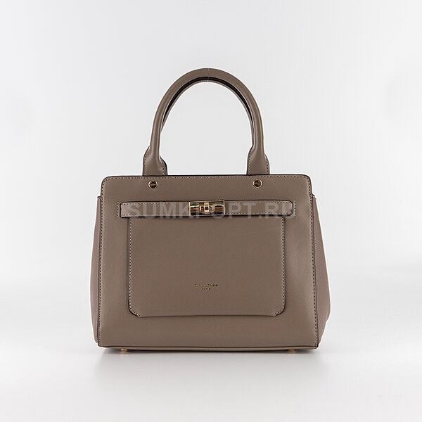 Сумка от торговой марки David Jones из искусственной кожи цвета тауп. Модель с двум ручками и съемным регулируемым плечевым ремнем. Отделение на молнии. Внутри: фирменная подкладка, средник и карман на молнии, накладной карман. На лицевой стороне – накладной карман с поворотным замком. На задней стороне – карман на молнии. Дно оснащено металлическими ножками для защиты от износа.
