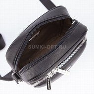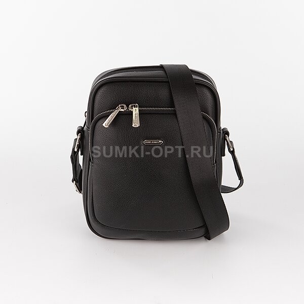Сумка от торговой марки David Jones из искусственной кожи черного цвета. Модель вертикальной ориентации с несъемным регулируемым плечевым ремнем, выполненным из текстильного материала. Отделение на молнии. Внутри: фирменная подкладка, карман на молнии, накладной карман. На лицевой и задней сторонах – карман на молнии.
