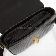 Сумка от торговой марки David Jones из искусственной кожи черного цвета. Лицевая сторона декорирована тиснением под крокодиловую кожу. Модель со съемной ручкой и съемным регулируемым плечевым ремнем. Закрывается клапаном на поворотном замке. Отделение на молнии. Внутри: фирменная подкладка, карман на молнии. На задней стороне – карман на молнии.