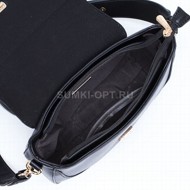 Сумка от торговой марки David Jones из искусственной кожи черного цвета. Модель с широким съемным регулируемым плечевым ремнем с кобурными кнопками. Закрывается клапаном на цупферном замке. Отделение на молнии. Внутри: фирменная подкладка, карман на молнии, накладной карман. На задней стороне – карман на молнии.