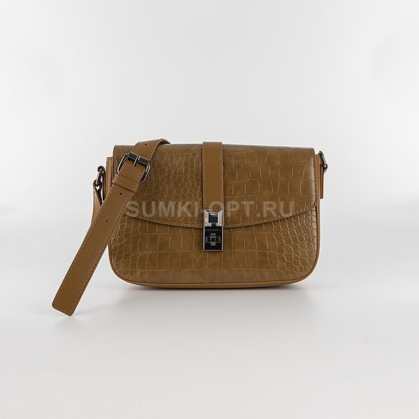 Сумка от торговой марки David Jones из искусственной кожи цвета dark camel. Модель с широким несъемным регулируемым плечевым ремнем. Закрывается клапаном на магнитной кнопке. Клапан декорирован тиснением под крокодиловую кожу. Отделение на молнии. Внутри: фирменная подкладка, карман на молнии, накладной карман. На задней стороне – карман на молнии.