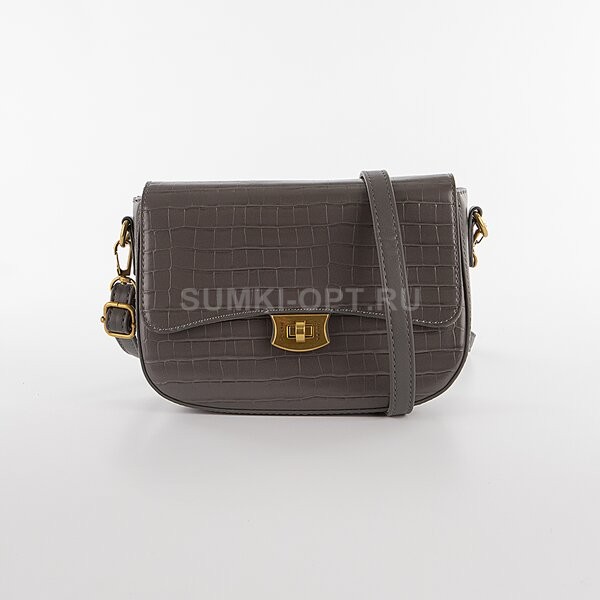 Сумка от торговой марки David Jones из искусственной кожи серого цвета. Лицевая сторона декорирована тиснением под крокодиловую кожу. Модель со съемной ручкой и съемным регулируемым плечевым ремнем. Закрывается клапаном на поворотном замке. Отделение на молнии. Внутри: фирменная подкладка, карман на молнии. На задней стороне – карман на молнии.